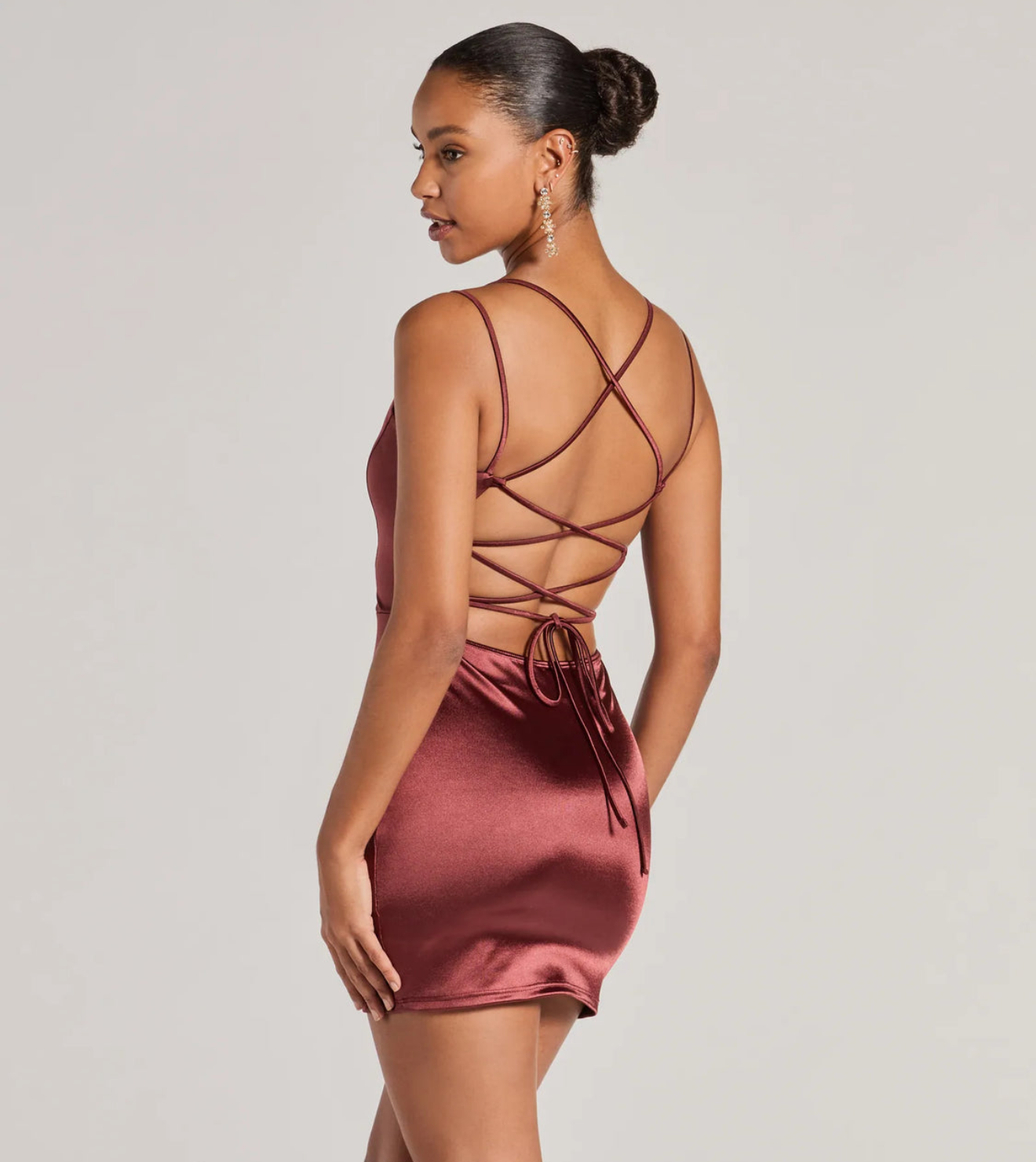 Un minivestido de satén ajustado con cordones, simplemente deslumbrante