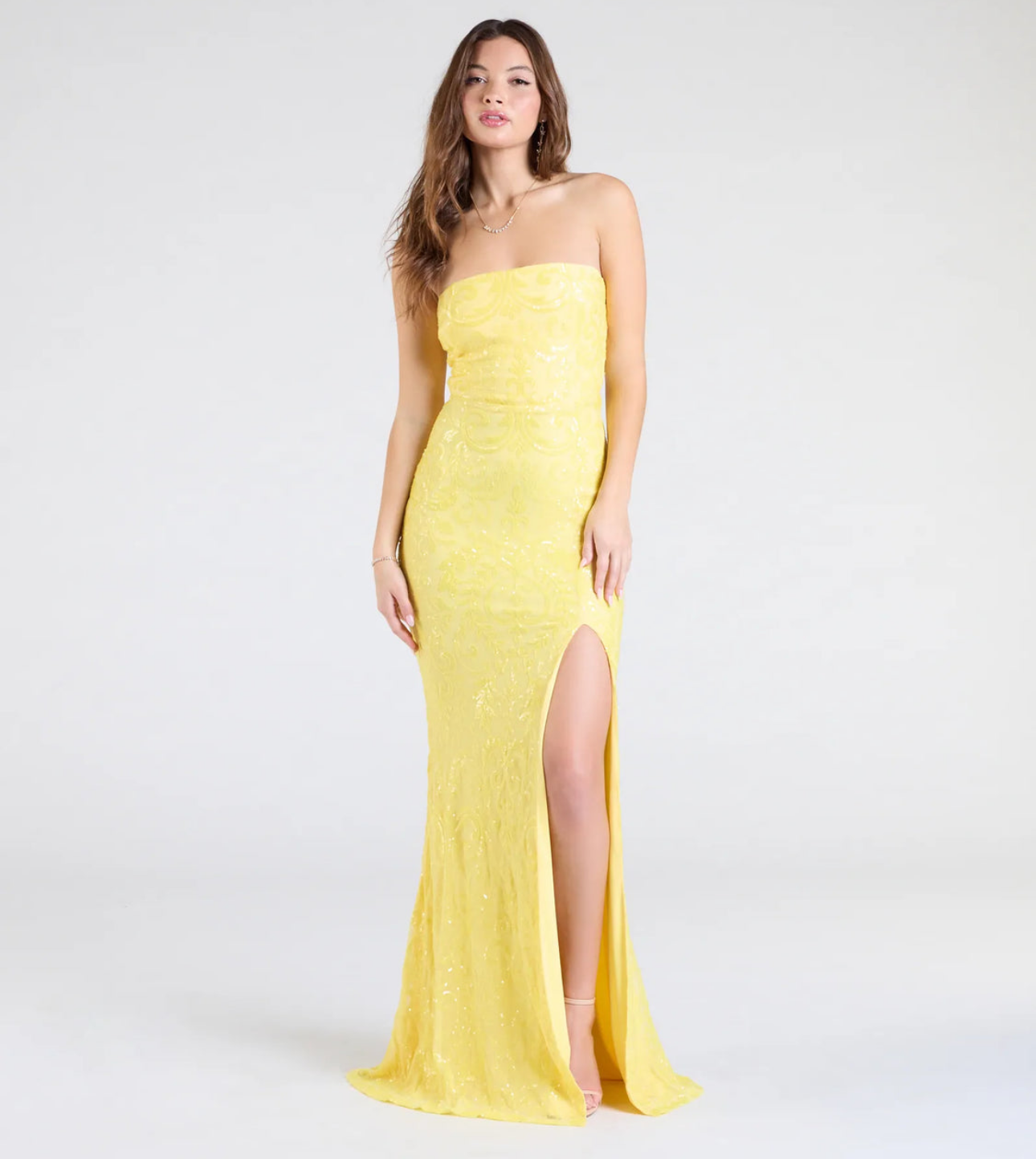 Vestido formal Barbara de sirena con lentejuelas y abertura sin tirantes